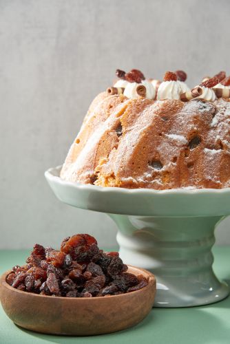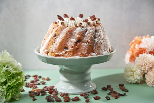 - 麵粉過篩後加入步驟2拌勻,並加入加州葡萄乾跟榛果